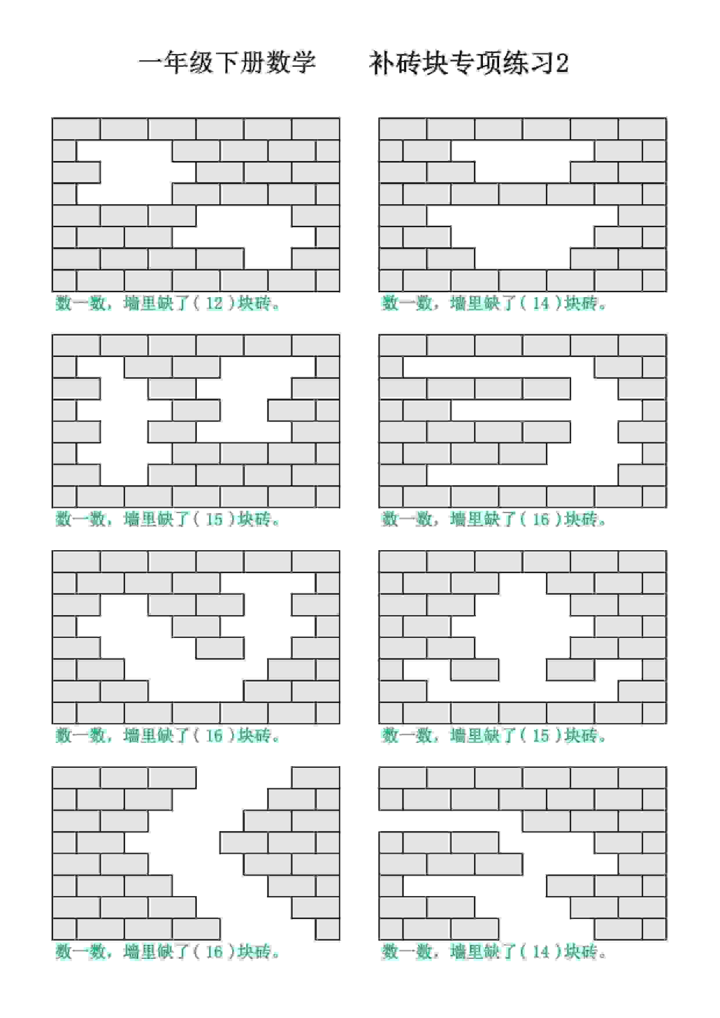 首页 > 全部 > 一年级 > 一年级下数学补砖块专项练习