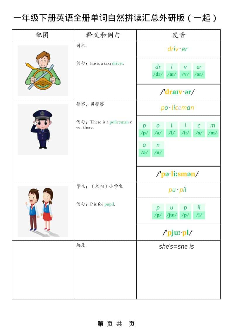 首页 > 全部 > 一年级 > 一年级下英语全册单词自然拼读汇总《外研版(一起)》